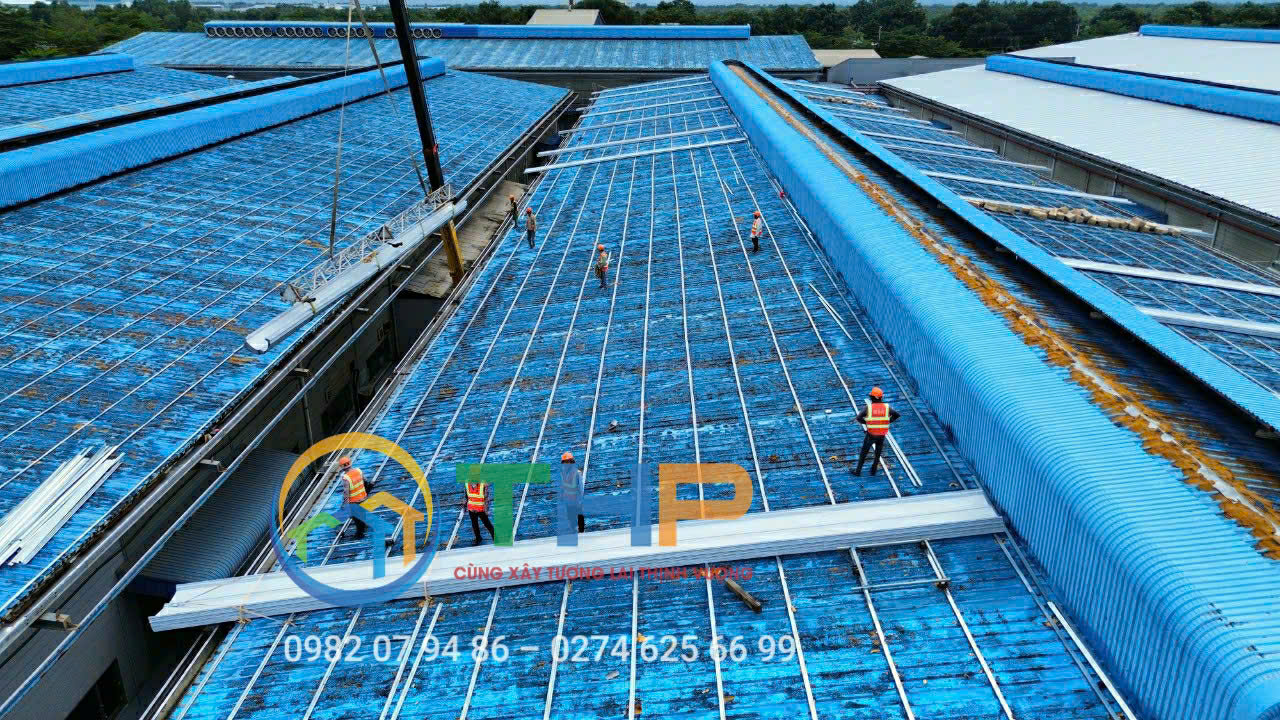 Công ty Tân Hồng Phúc tự hào là đơn vị cung cấp phẩm chất lượng cao cho dự án thay tôn lợp mái của Songwol Vina tại KCN Đức Hòa, Long An. Với diện tích mái gần 40.000m², đây là một trong những công trình lớn, đòi hỏi sự chính xác, bền vững và hiệu quả trong từng hạng mục.